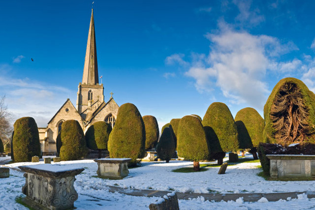 In the heart of beautiful Painswick, the spire of St Mary’s Church towers above the town. Take the time to count the perfectly trimmed yew trees in the churchyard and you’ll find that there are 99 of them. Legend says that a 100th tree will never grow, and if it did, the devil would pull it out!