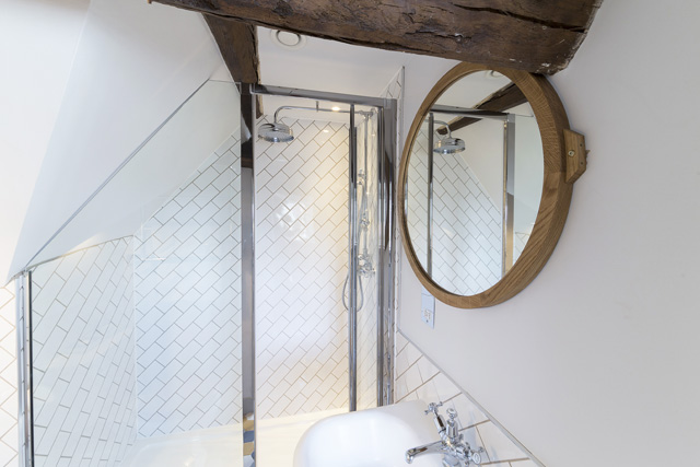 Room 14 is located on the second floor and accessed via its own private staircase. Its slightly wonky floor, slanted ceiling and original beams exude unmistakable Cotswolds character, while its view across The Square makes it a great spot for watching the world go by.